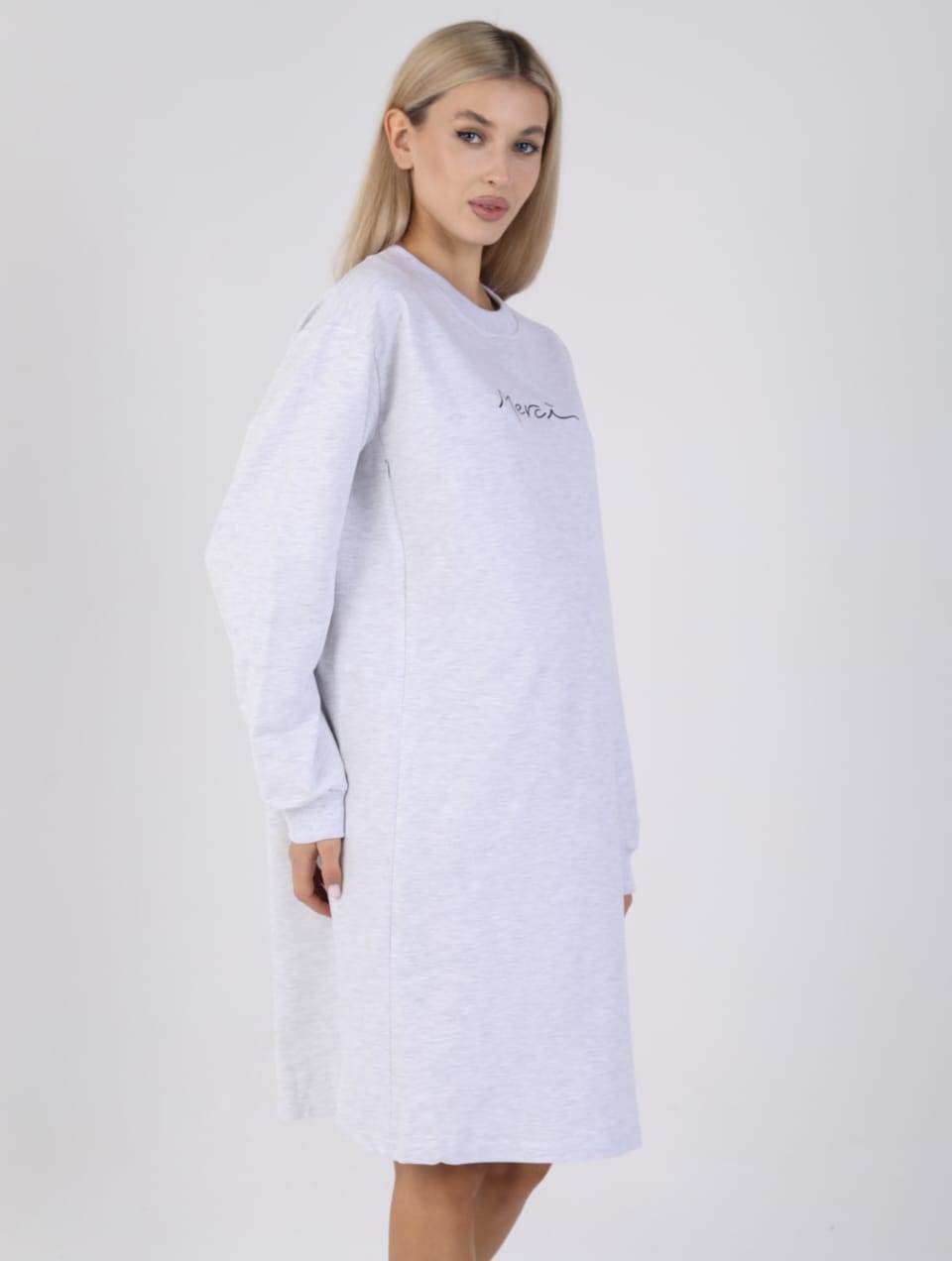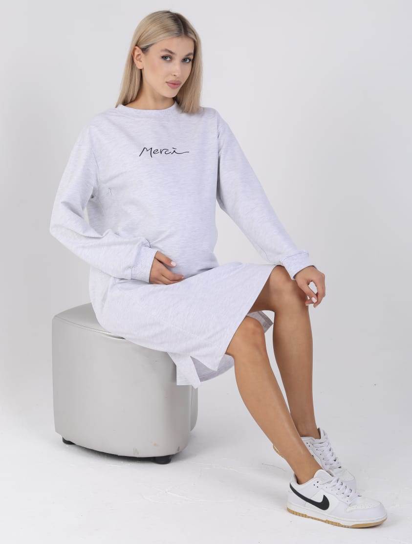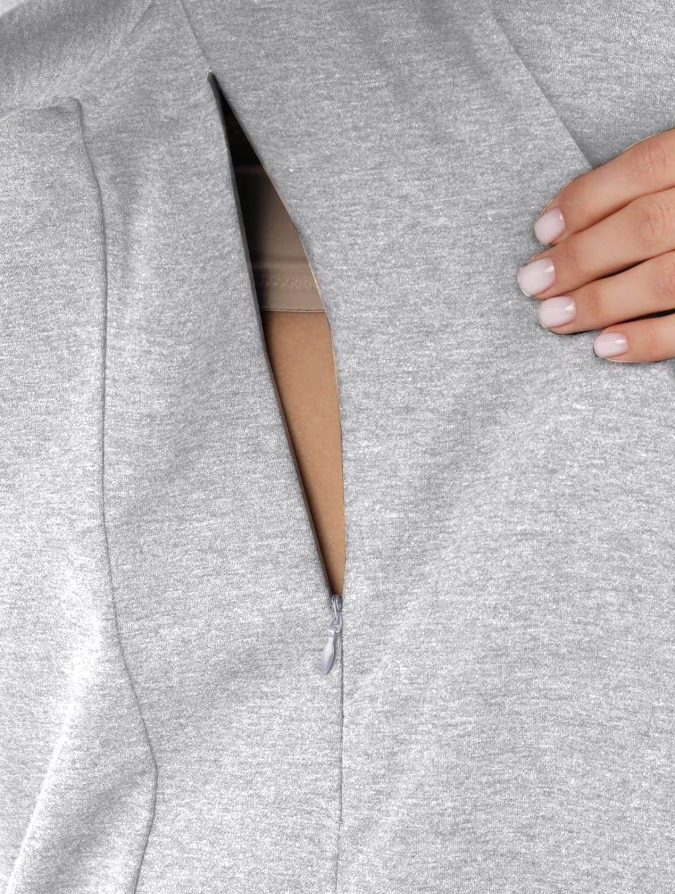 Имеет свободный силуэт и потайные замки для удобства кормления.